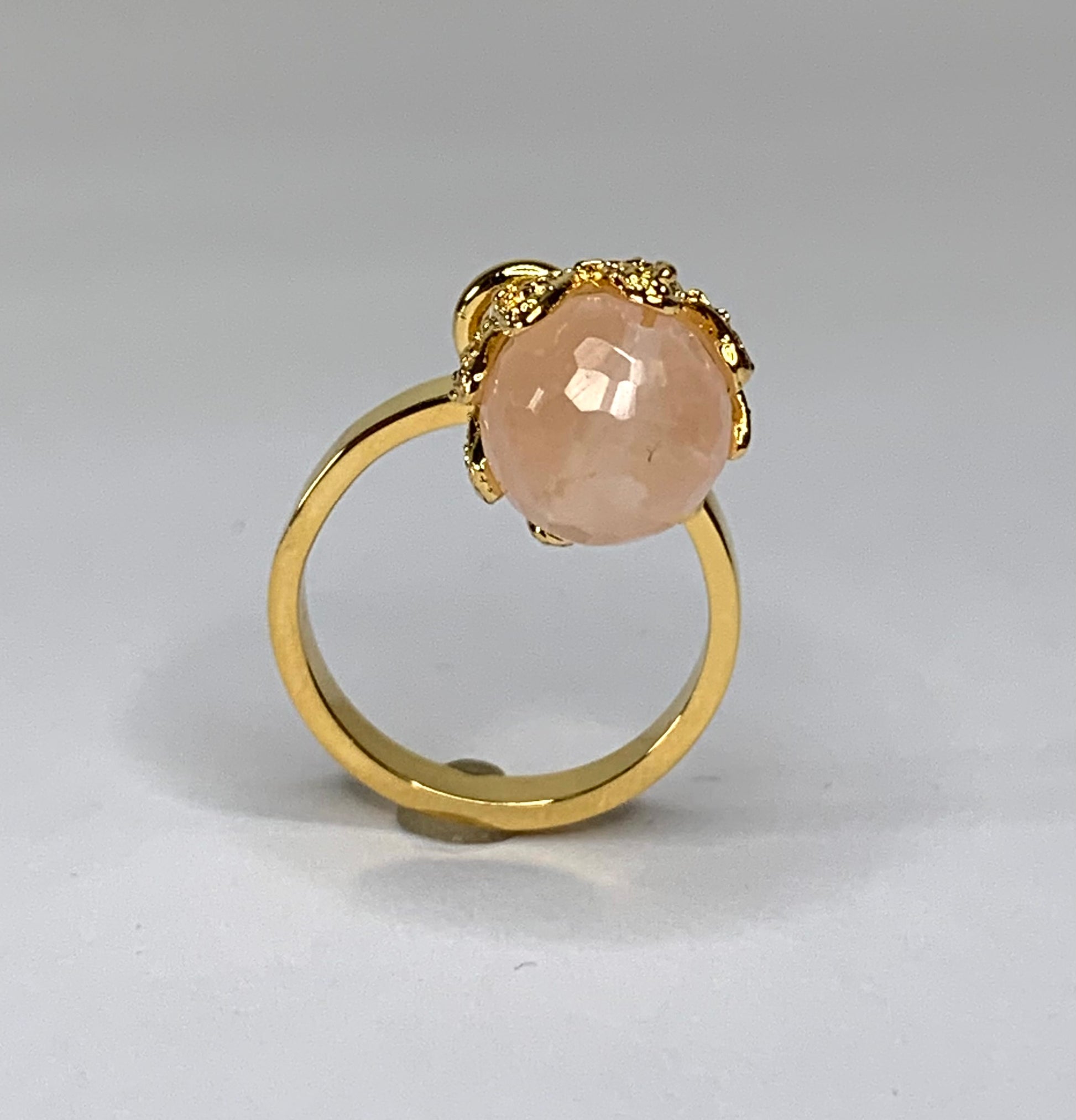 Anello Mughetto in argento 925/1000 e bronzo galvanizzato oro, nelle seguenti varianti: quarzo trasparente, quarzo rosa, topazio azzurro, crisoprasio verde chiaro, crisoprasio verde scuro, agata rossa.