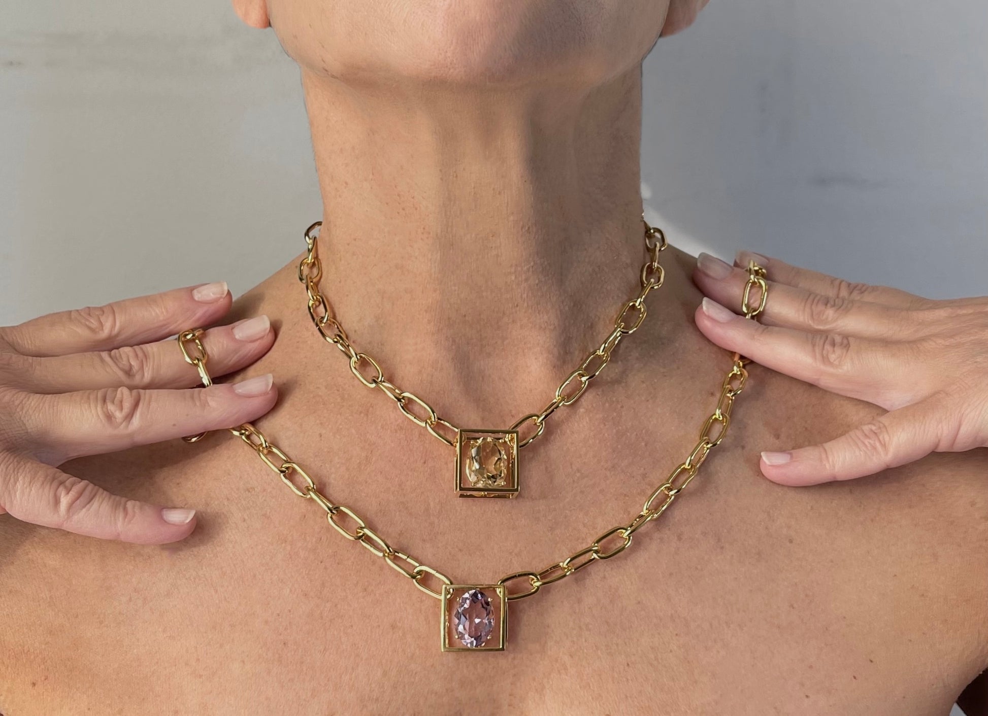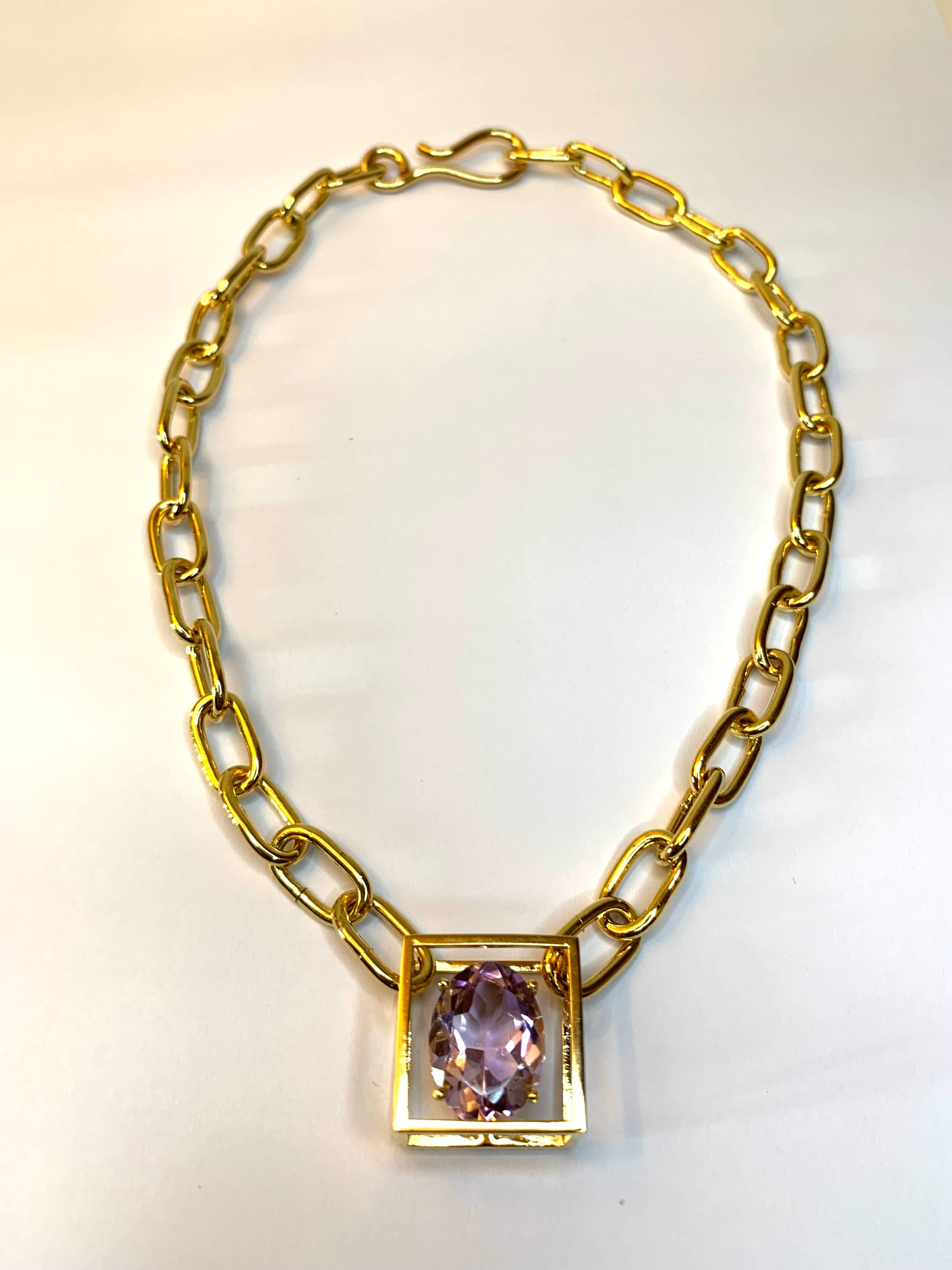Girocollo in argento 925/1000, ottone e ametista. Galvanizzato oro.