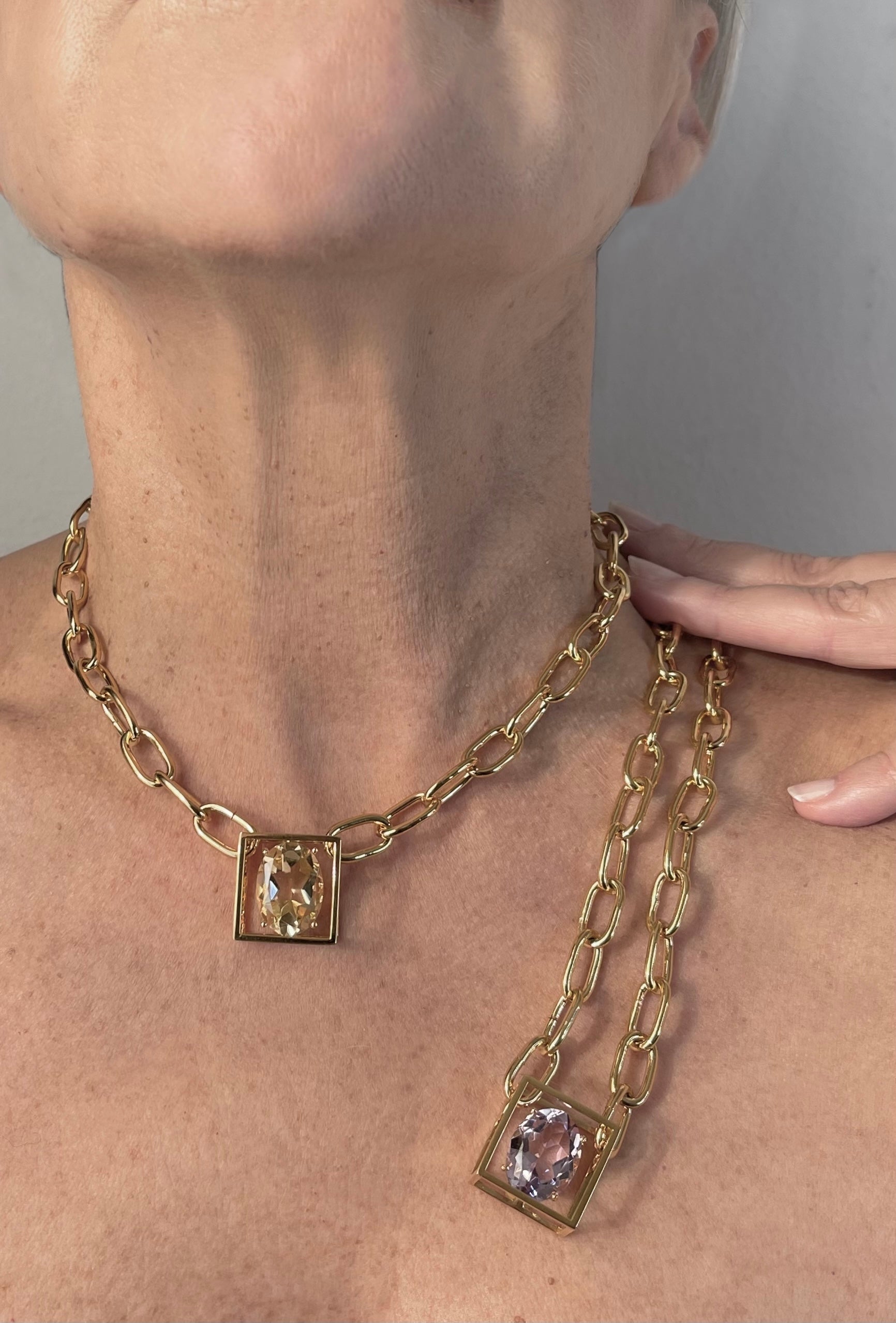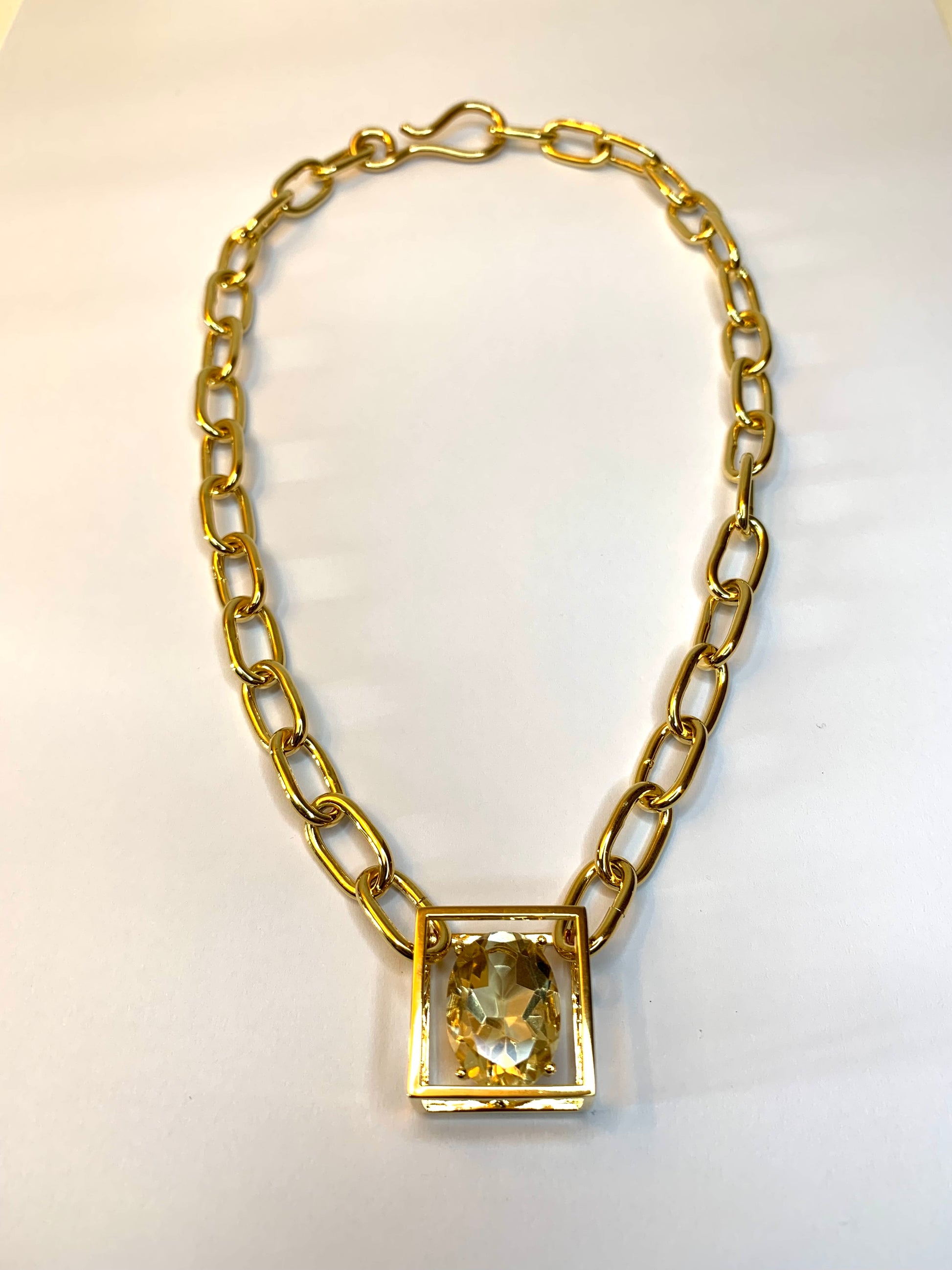 Girocollo in argento 925/1000, ottone e quarzo citrino. Galvanizzato oro.