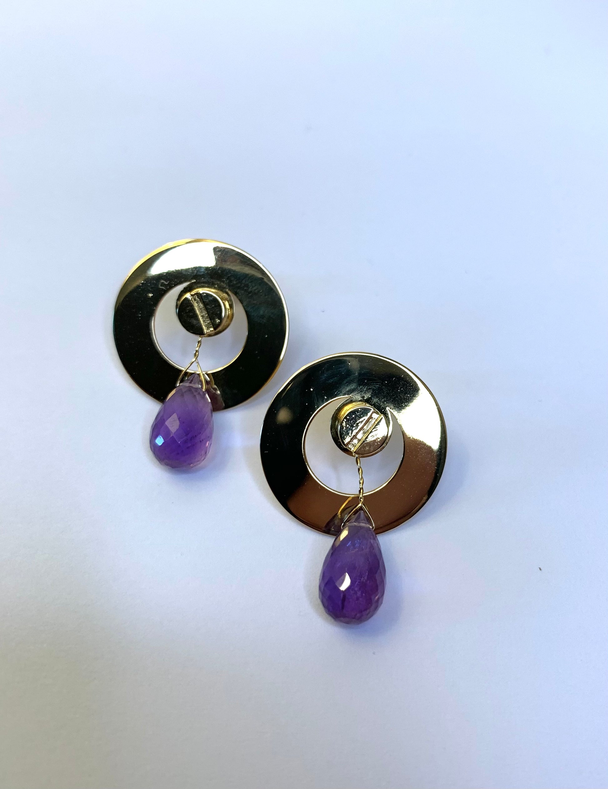 Orecchini in ottone con perno e farfalla in argento 800/1000, ametiste a goccia. Galvanizzati oro.
