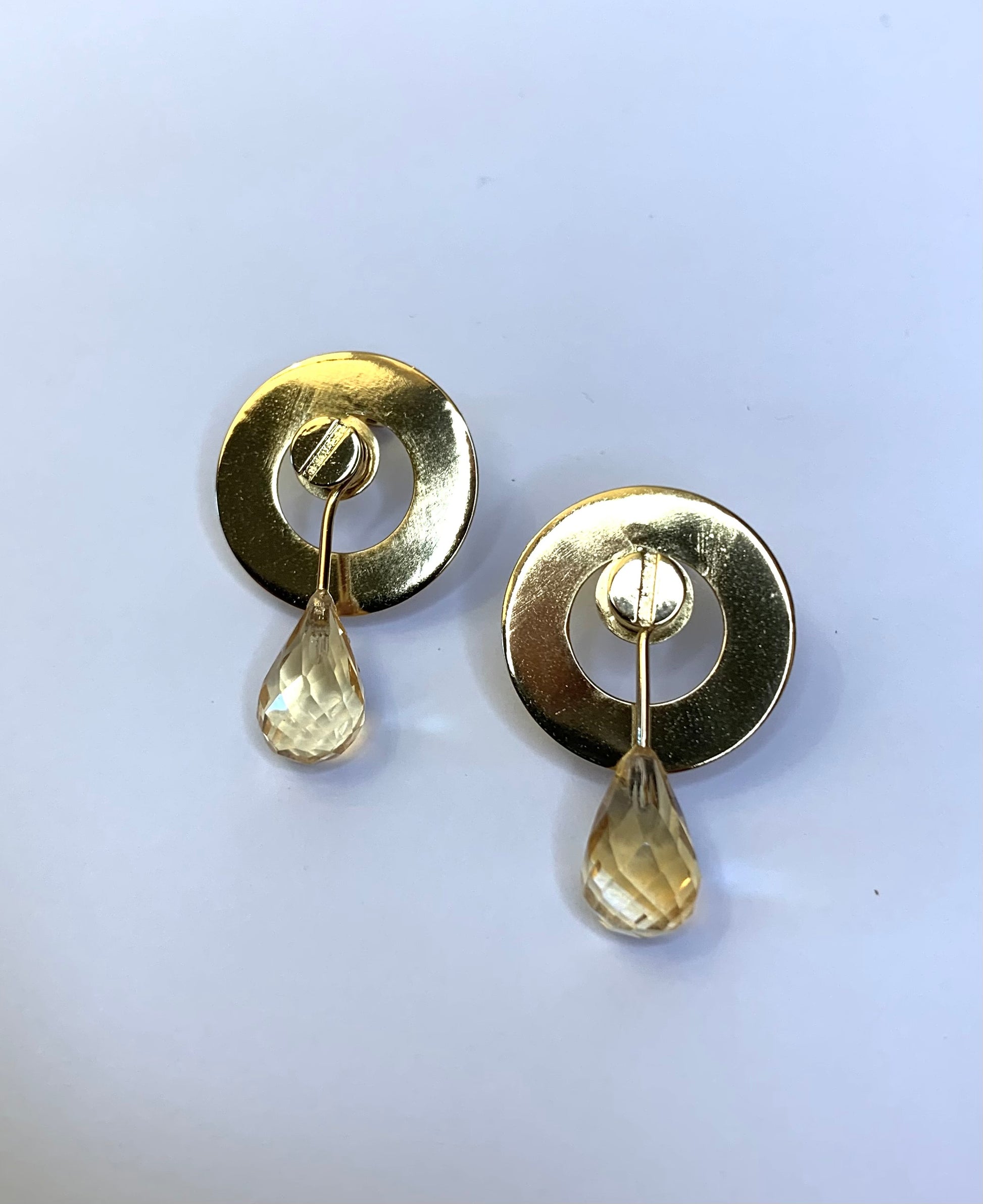 Orecchini in ottone con perno e farfalla in argento 800/1000 e quarzo citrino a goccia. Galvanizzati oro.