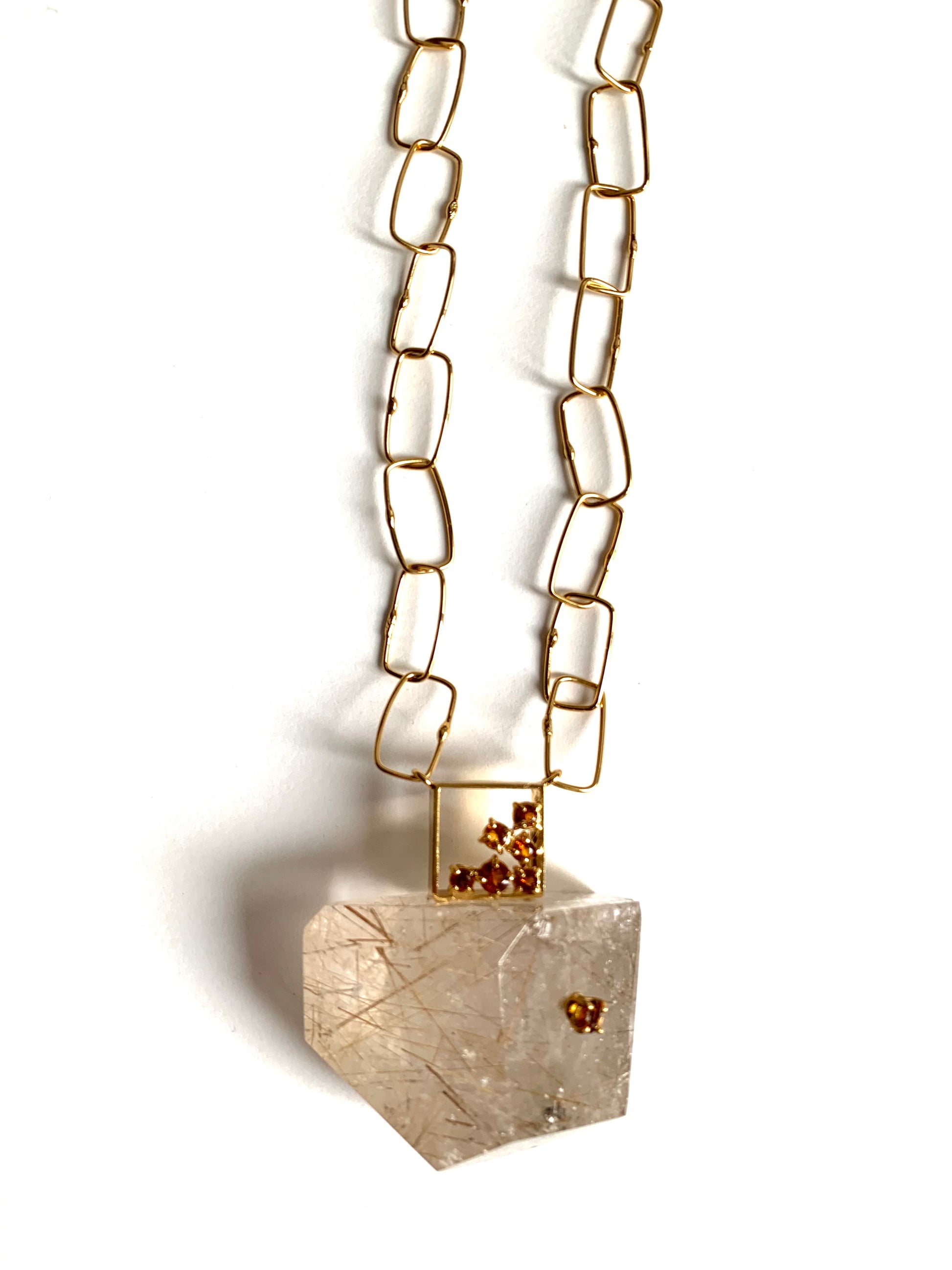 Argento 925 dorato, tormaline e quarzo rutilato